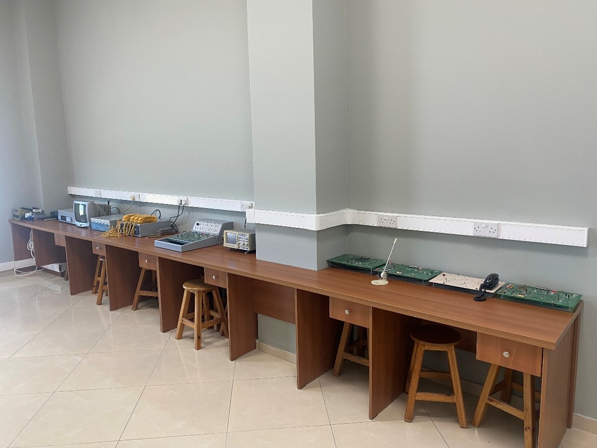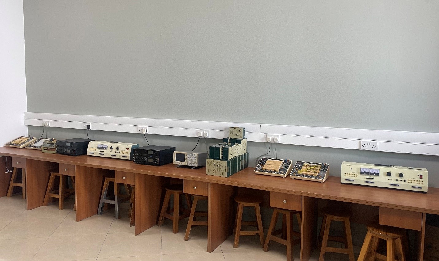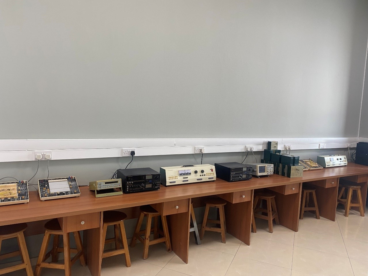 The communication laboratory of the Electrical and Electronic Engineering Department is a center focused on providing hands-on training for students in the various communication techniques using the modules listed in the research facilities below. The Mobile Telephony Series enables the experimental verification of theoretical subjects such as cellular telephony networks, measurement techniques, and mobile telephones characteristics. The various pre-assembled experimental boards allow the studies of Pulse Position Modulation (PPM), Pulse Code Modulation (PCM), Pulse Width Modulation (PWM), Pulse Amplitude Modulation (PAM), Linear, Delta, and Adaptive Modulation, etc. Digital modulation transmitters and receivers, such as Quadrature Amplitude Modulation (QAM), Quadrature Phase Shift Keying (QPSK), Frequency Shift Keying (FSK), Amplitude Shift Keying (ASK0), and Phase Shift Keying (PSK). Computation and troubleshooting of modern communication systems using a 4-channel PCM multiplex. Using the universal system, power module system, oscilloscope, and the communication trainer with more than 15 modules, experimental analysis of signals in areas such as amplification, filtering, modulation, sampling, etc., is conducted.