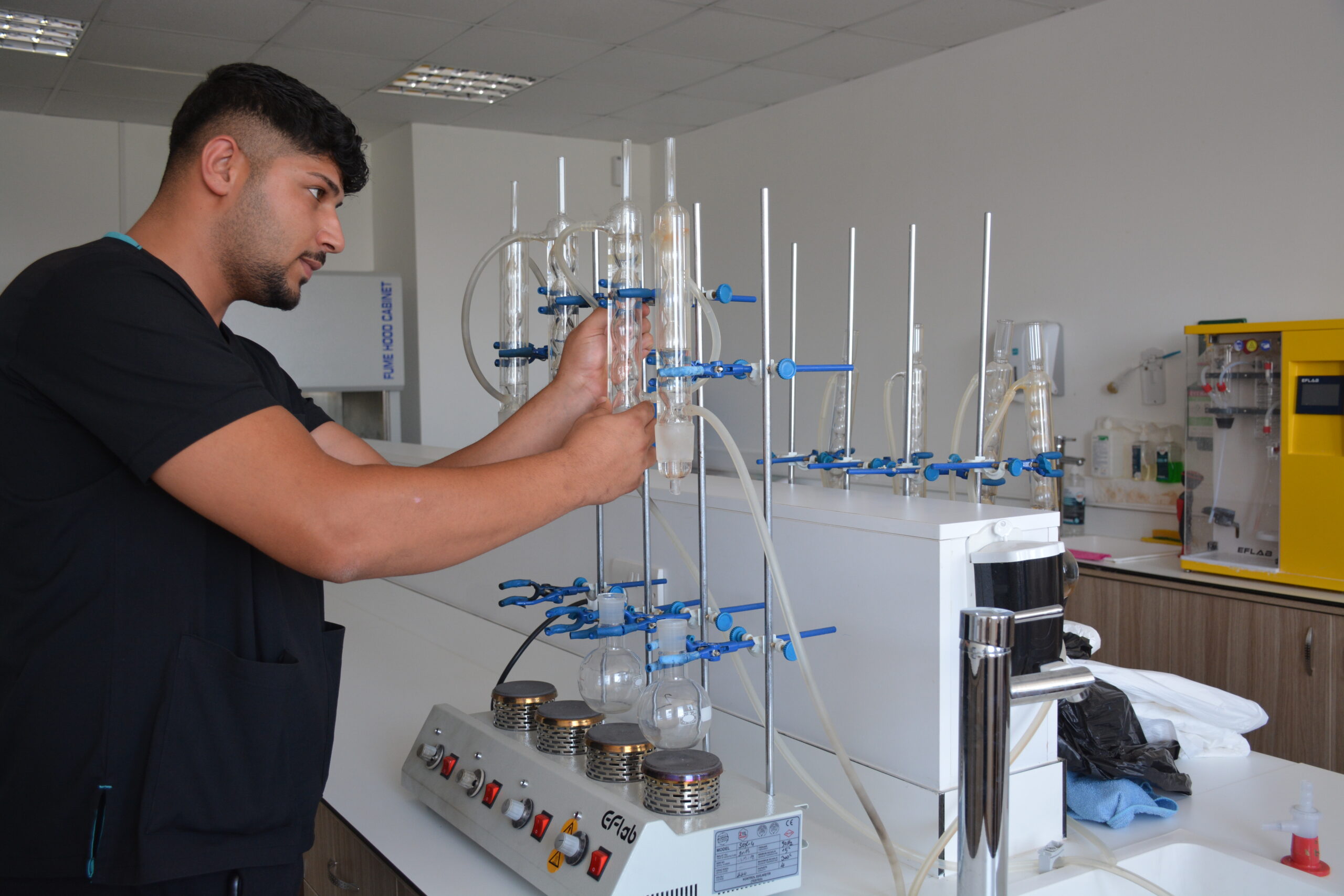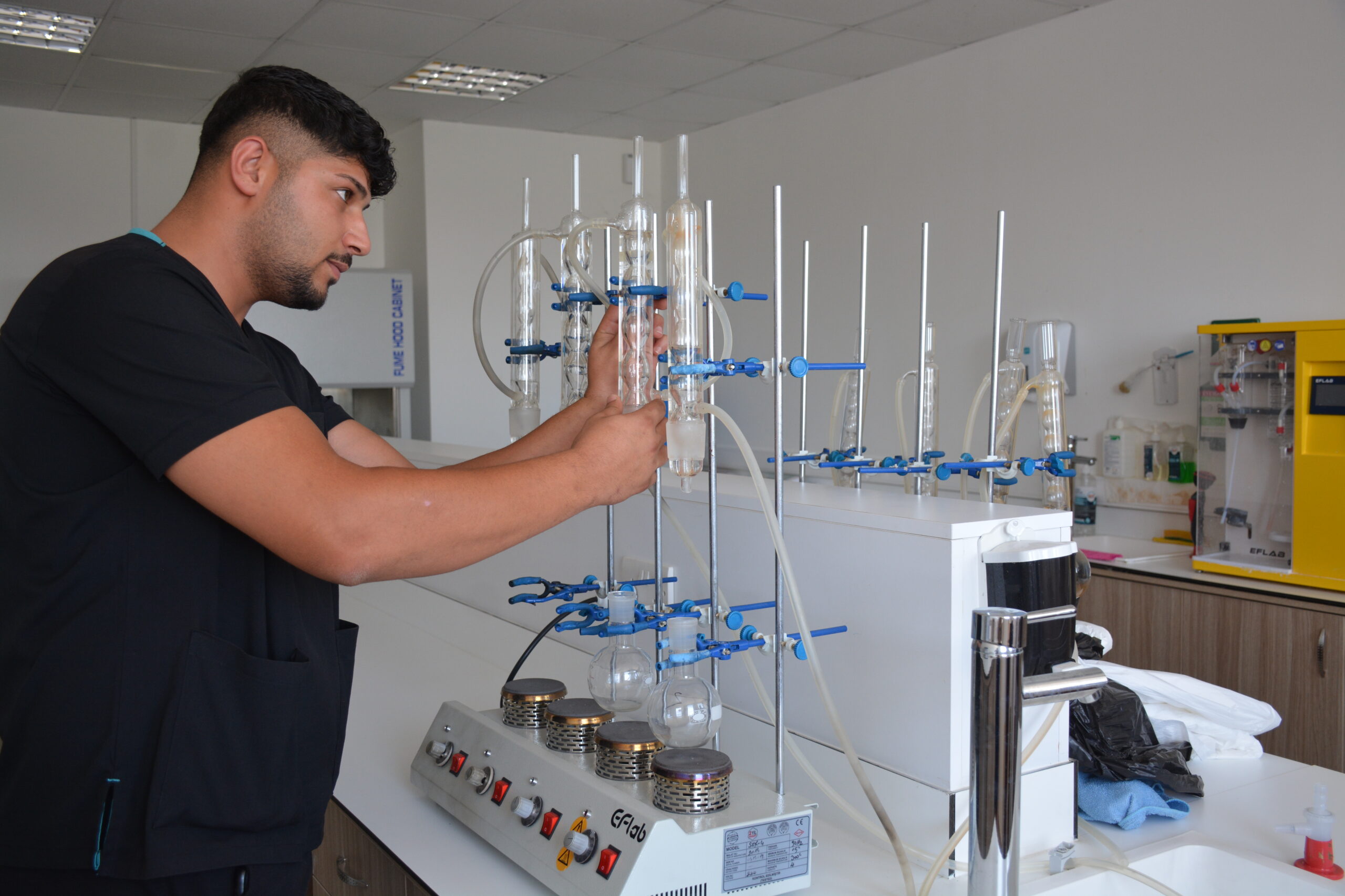 In animal nutrition and nutritional diseases laboratory, the chemical composition of feeds (crude protein, crude fat, crude cellulose, ash, moisture, etc.) is determined. Energy values (metabolic energy, digestible energy) of feeds are measured, mineral and vitamin contents are analysed, effects of feed additives (e.g. enzymes, probiotics) are examined, digestion and absorption studies are carried out and digestion rates of different feeds in animals are investigated, in vitro or in vivo digestion tests are performed in this context. Fermentation parameters in the rumen are measured (pH, volatile fatty acids, ammonia content, etc.). Feed formulation and ration trials are carried out to optimise the ration by using different feed raw materials. Animal performance trials are conducted to investigate the effects of different feeds on live weight gain, milk yield, egg production, reproductive performance of animals. The effects of feeding strategies on meat quality, milk composition or egg quality are examined. Metabolism researches are carried out and changes in biological materials such as blood, urine, milk (glucose, urea, lipid profile, etc.) are analysed. Metabolic pathways of nutrients and their effects on animal health are studied. The relationship between immune system and nutrition is evaluated and the effect of feed on the immune system of animals is examined.